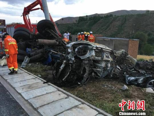 目前,事故已造成冀JL2231重型半掛牽引車內2人當場死亡,甘N83628號小轎車內5人當場死亡,1名小孩重傷,青AS9351號小轎車內4人受傷。