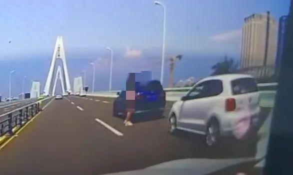 從網(wǎng)友提供的現(xiàn)場(chǎng)視頻可看到,三輛事故車分別依序停在橋上,在藍(lán)色越野車和白色轎車中間有一名女子被困其中,白色轎車的車尾被撞凹陷嚴(yán)重,白色轎車的后方還停著另一輛車頭受損的轎車。而在另一個(gè)視頻中,能看到藍(lán)色越野車和白色轎車在發(fā)生事故后前后停在路上,但是兩車還隔著一些距離,還能看到有一個(gè)人站在兩車中間位置的一側(cè)。
