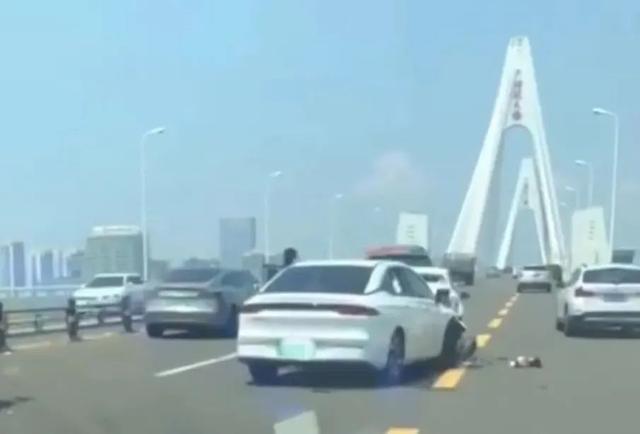9月15日13時(shí)20分左右,在海口世紀(jì)大橋上接連發(fā)生兩起碰撞事故,先是白色轎車和越野車發(fā)生碰撞,當(dāng)前方兩車的司機(jī)下車處理事故時(shí),后方駛來(lái)的另一輛轎車追尾碰撞了白色轎車,事故造成一死一傷。