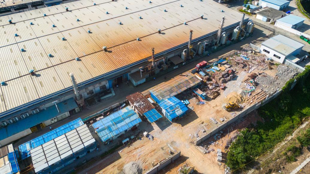 2022年11月19日,廣東惠州,航拍18日晚發生火情的大亞灣西區比亞迪三期F6廠房。