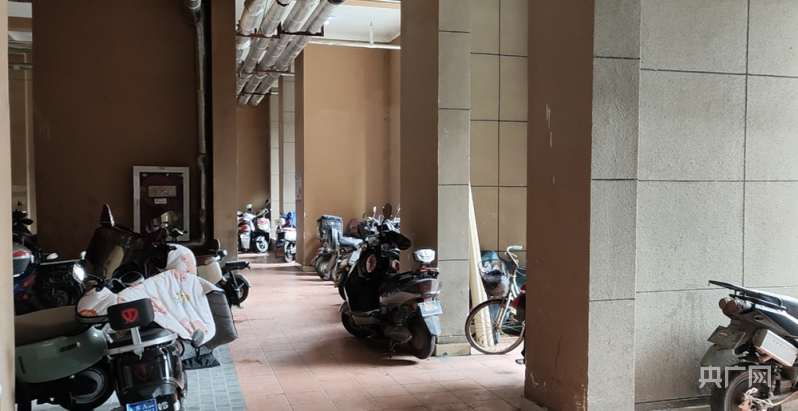 同小區(qū)3棟1樓架空層內(nèi)停放多輛電瓶車(央廣網(wǎng)記者 王紀(jì)民 攝)
