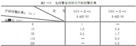 電報警安全帽是我國新研制成功的,適合在有觸電危險的環境里進行巡查作業時使用。例如在高、低壓供電線路維修或安裝電氣設備時,當工作人員接近帶電設備危險距離時,安全帽會自動報警,提醒工作人員避免觸電事故的發生。電報警安全帽還具有非接觸性檢驗高、低壓線路是否斷電和斷線的功能。表2-13是對不同電壓線路開始報警的距離。