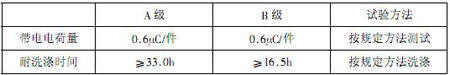 (2)防靜電性能:每件防靜電服的帶電電荷量、耐洗滌性能,必須符合表1的要求。