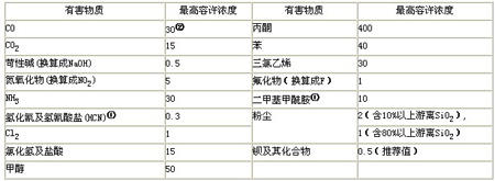 2)工作場地空氣中有害物質的最高容許濃度見表4