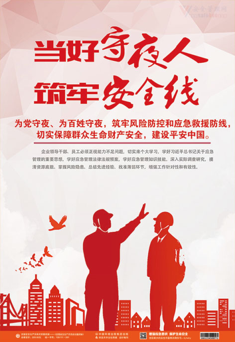本套招貼體現了國家政策、以人為本、安全發展、應急管理、安全教育等多方面內容,緊扣 2020 年全國安全生產月主題,畫面簡潔大方,富有沖擊力,既烘托氣氛又發人深思。適于各級政府和企業安全月期間進行宣傳展示。(本招貼將根據具體安全生產月主題進行一定的調整)