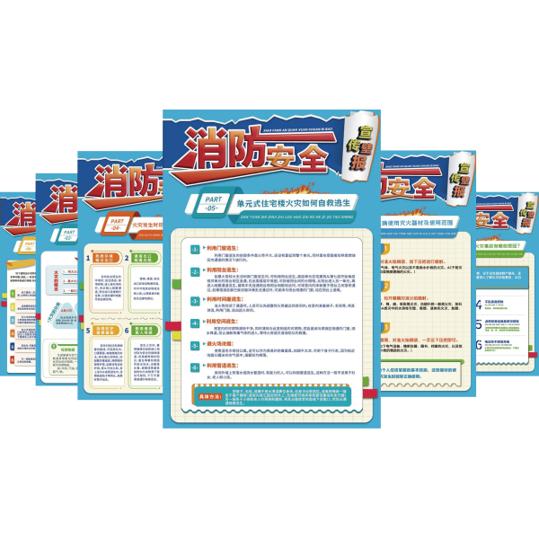 消防安全宣傳壁報(bào)掛圖的內(nèi)容涵蓋了消防安全的各個(gè)方面,如“如何正確使用滅火器”、“火災(zāi)逃生技巧”、“容易發(fā)生火災(zāi)事故的原因”等。通過(guò)采用鮮艷的色彩和生動(dòng)的圖像,同時(shí),配以簡(jiǎn)潔明了的文字知識(shí),使公眾和企業(yè)員工能夠迅速理解并記住所宣傳的消防安全知識(shí)。通常張貼在公共場(chǎng)所、小區(qū)報(bào)欄畫廊、工礦企業(yè)等行人較多的地方,以便公眾隨時(shí)觀看和學(xué)習(xí)。