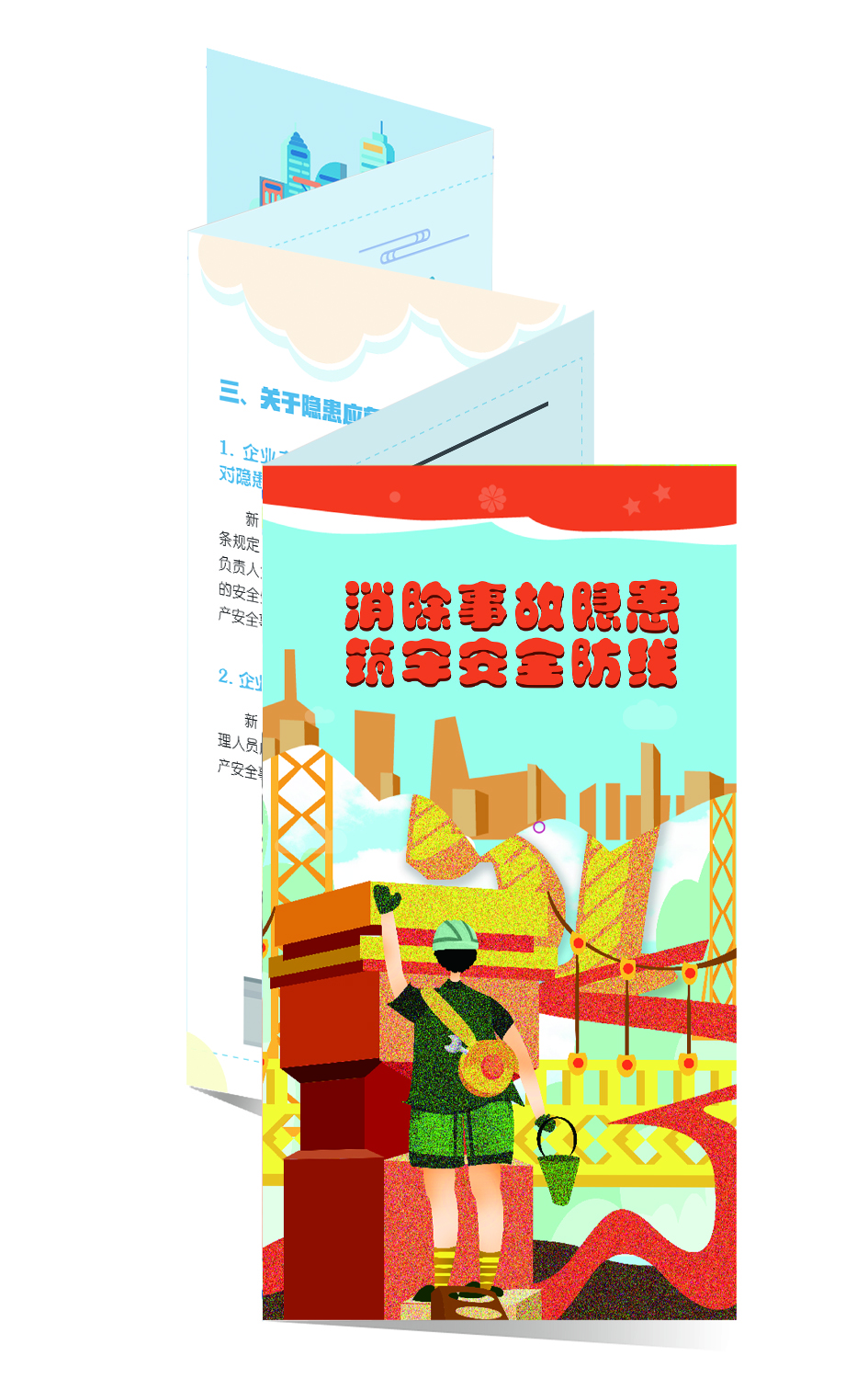 為方便安全生產宣傳活動,我們編制了系列安全生產折頁,內容生動活潑,實用性強,內容涵蓋面廣,為您普及日常生產與生活中的安全知識。本套折頁與掛圖形式結合,使安全教育更加到位,彌補安全宣教掛圖和圖書教材的不足,形式新穎,喜聞樂見,便于安全宣教活動發放,內容新,符合國家最新法律法規和標準,具有可讀性,從業人員一看便懂一看便會,宣教效果立竿見影。