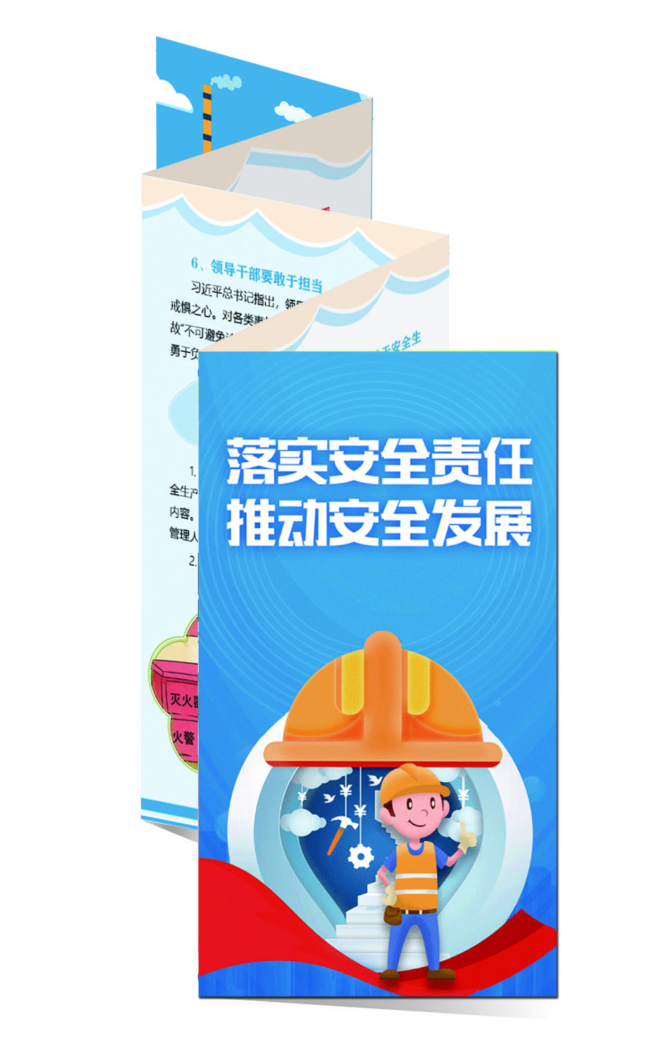 為方便安全生產宣傳活動,我們編制了系列安全生產折頁,內容生動活潑,實用性強,內容涵蓋面廣,為您普及日常生產與生活中的安全知識。本套折頁與掛圖形式結合,使安全教育更加到位,彌補安全宣教掛圖和圖書教材的不足,形式新穎,喜聞樂見,便于安全宣教活動發放,內容新,符合國家最新法律法規和標準,具有可讀性,從業人員一看便懂一看便會,宣教效果立竿見影。