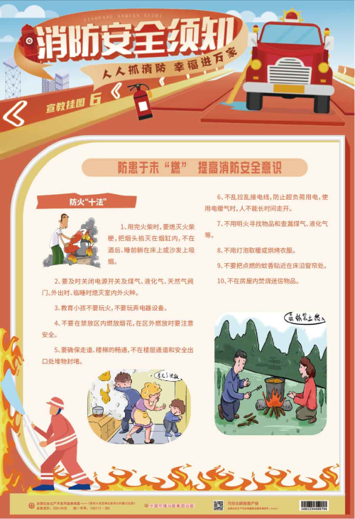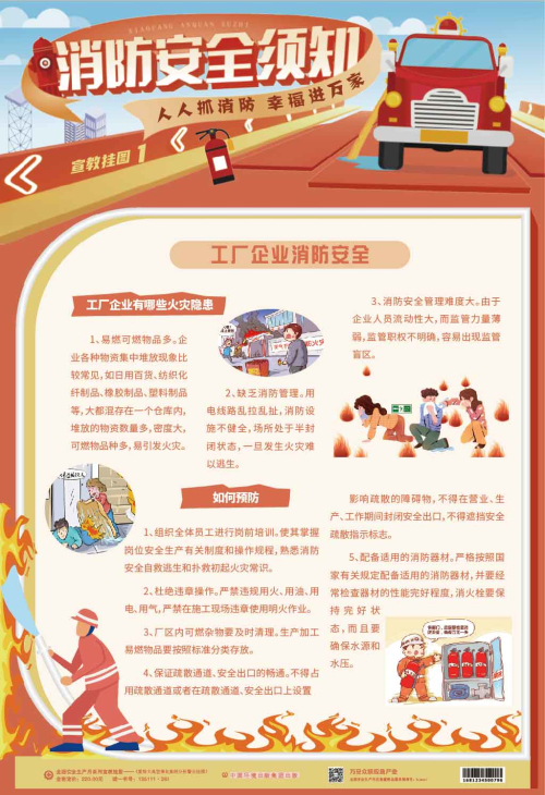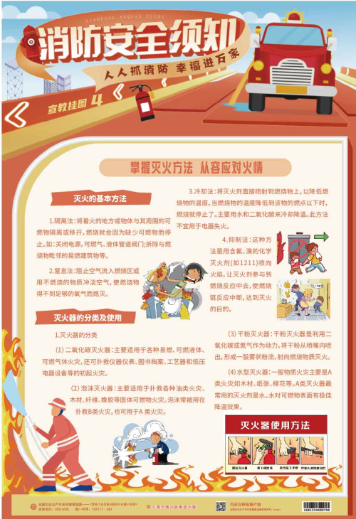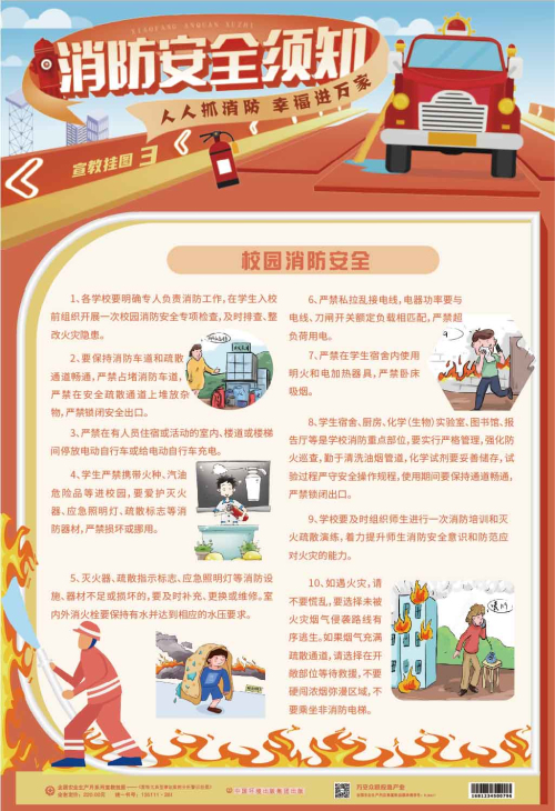 本套掛圖內容豐富,以圖文并茂的形式講述了不同場合發生火災時的自救常識、逃生技巧等,注重實用性和操作性,對普及消防安全知識,增強消防安全意識,提高公民逃生自救能力都具有較強的指導作用和實用價值。