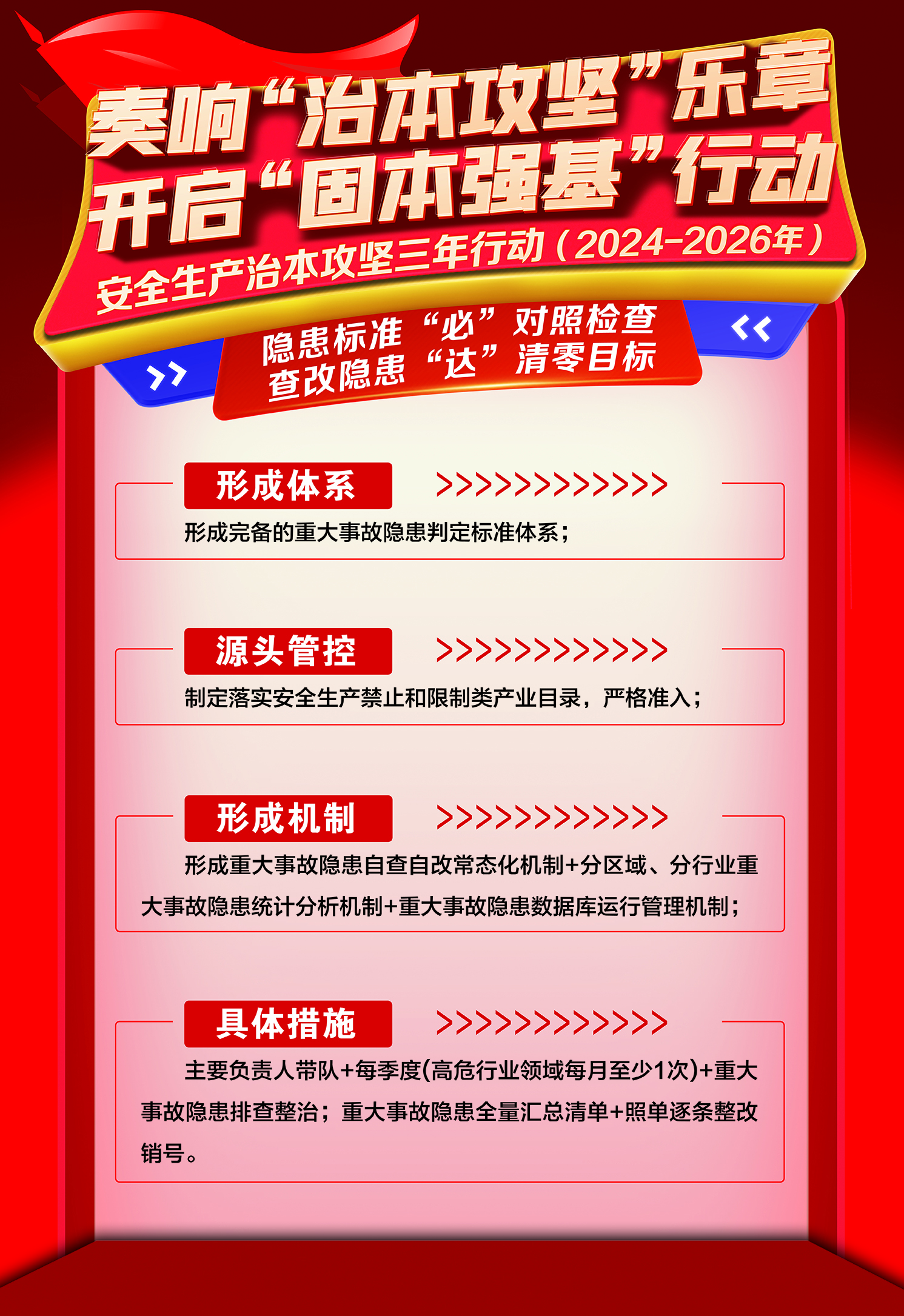 通過對八大行動“需”推動、查改隱患清零目標、工程治理升級改造、疏散逃生熟知、安全素質全民提升等方面的闡述,梳理提煉了安全生產治本攻堅三年行動關鍵行動要求,為企業開展相關工作提供了重要支撐。