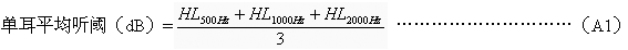 雙耳平均聽閾(dB)=(較好耳平均聽閾(dB)×4+較差耳平均聽閾(dB)×1)/5……(A2)