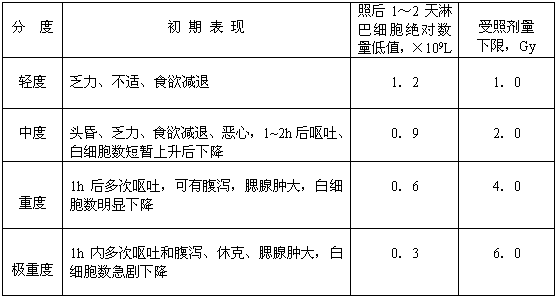 表1 骨髓型急性放射病的初期反應和受照劑量下限
