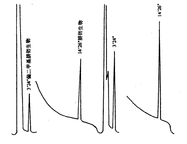 B5.4 測(cè)定:按繪制標(biāo)準(zhǔn)曲線(xiàn)的條件,取10μL樣品提取液進(jìn)樣,重復(fù)3次,以平均峰高減去對(duì)照試驗(yàn)峰高,從標(biāo)準(zhǔn)曲線(xiàn)上求得偏二甲基肼含量(μg)。