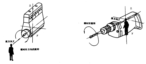 確定旋轉運動的方向,與觀察者的實際位置和視方向無關,而應假定觀察者的視方向與對象物或其某部分的旋轉軸相一致(見圖15~圖17)。順時針的旋轉方向為正,逆時針的旋轉方向為負。