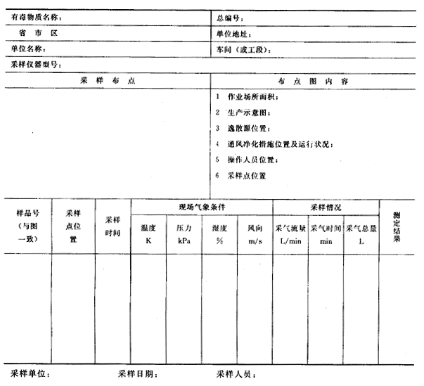 本標準規定了作業場所空氣中有毒物質測定時,采樣點的設定、采樣頻率、采樣時機、采樣方法。