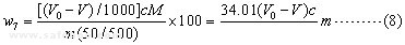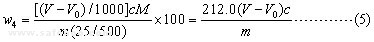 水分的質(zhì)量分?jǐn)?shù)w5,數(shù)值以%表示,按下列公式(6)計(jì)算: