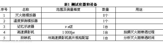 滅火瓶電爆閥與高速攝影機使用同一電源啟動。用高速攝影機拍攝滅火劑的噴灑過程。然后通過放映影片,分析確定滅火瓶閥門打開時間及滅火劑噴灑時間。