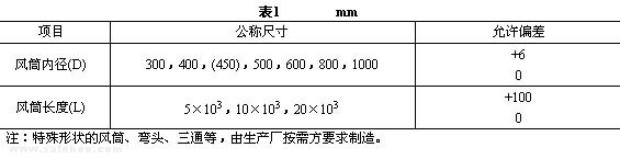 4.1 風筒的規格尺寸應符合表1的規定。