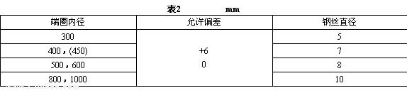 4.4.1 風筒端圈材料采用彈簧鋼絲時,其規格尺寸應符合表2的規定。