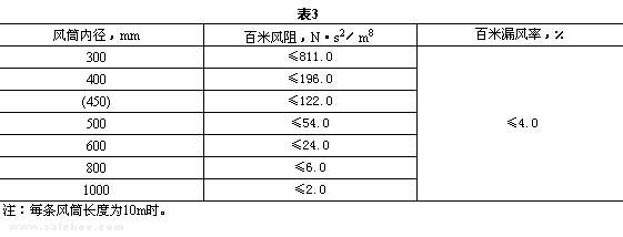 4.6.2 風筒的百米漏風率應符合表3的規定。