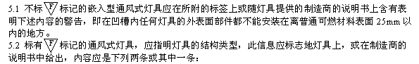 應注意的是,本標準只規定了通風式燈具安全方面的要求,沒有規定性能方面的要求。