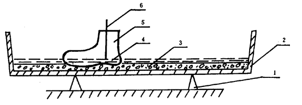 5.2 B法:試樣內電極為金屬鞋楦(其規格應與試樣鞋號一致)或鋪滿鞋底布的直徑不大于4mm的金屬粒子;外電極為置于金屬器皿的浸水泡沫塑料或水。