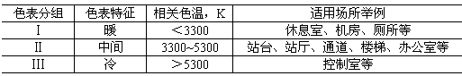 地下鐵道的地下各場所照明光源的色表宜符合表5的規(guī)定。