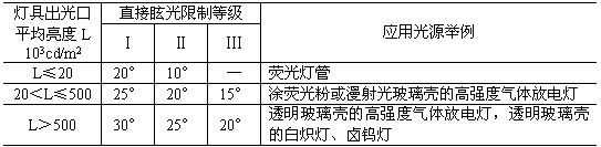 直接型燈具的最小遮光角應(yīng)符合表4的規(guī)定。