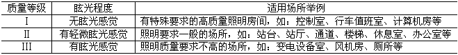 地下鐵道地下各場所的直接眩光限制質(zhì)量等級應(yīng)符合表3的規(guī)定。