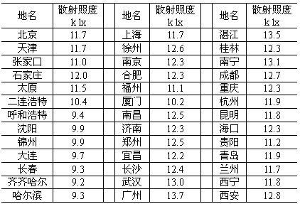 3.3 年平均散射照度 日出后半小時到日落前半小時之間的每小時測得的散射照度的年平均值。