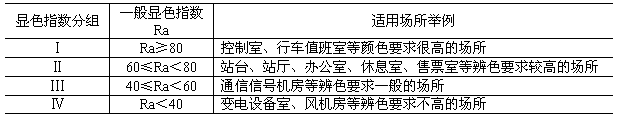地下鐵道地下各場所照明光源的一般顯色指數(shù)宜符合表6的規(guī)定。