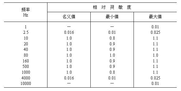 表2 振動速度的相對靈敏度允差