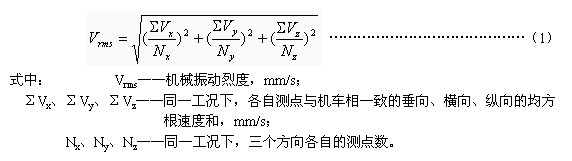 1.1 機械振動烈度是指設備在一定工況下,在選定的位置上按不同方向,測量計算出的最大機械振動速度的均方根值。
