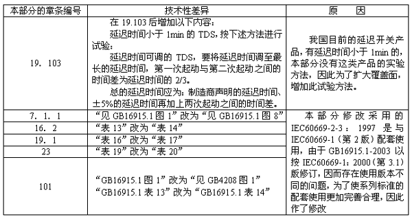 本部分與IEC60669-2-3:1997 技術性差異及其原因