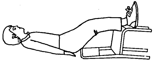 3.2.4 高處墜落、撞擊、擠壓可能有胸腹內臟破裂出血。受傷者外觀無出血,但常表現面色蒼白、脈搏細弱、氣促、冷汗淋淳、四肢厥冷、煩躁不安、甚至神志不清等休克狀態,應迅速躺平,抬高下肢(圖10),保持溫暖,速送醫院救治。若送院途中時間較長,可給傷員飲用少量糖鹽水。
