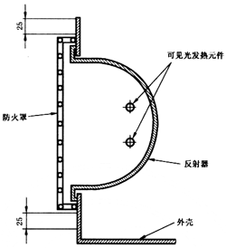 21.101 可見發光的輻射式加熱器,除了高位安裝的以外,其余的放置應使防火保護罩的中心部分處于水平位置。