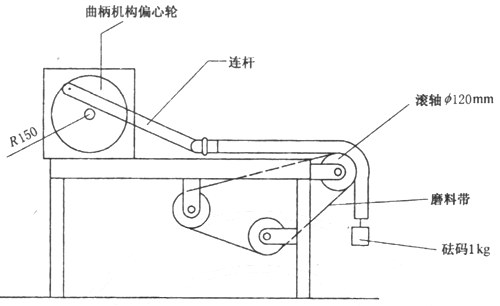 將軟管用一個旋轉的光滑滾輪來支撐,在滾輪的外緣上附著一條砂布帶,以0.1m/min的速度移動。砂布的磨料為金剛砂,按照ISO/DIS6344的規定顆粒大小為P100。