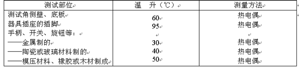 試驗期間,熱熔斷體不應動作,溫升要連續監測,在工作周期結束后,迅速記錄各部溫升,其值不應超過表1的規定,如有密封填料等材料,則不應流出。