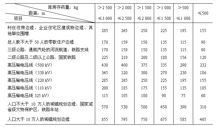 5.2.2 A級(jí)爆破器材庫房的外部距離應(yīng)符合表4的規(guī)定。