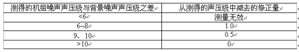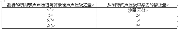 7.4.1.2 背景噪聲按表2進行修正。本標準要求測得的機組噪聲聲壓級與背景噪聲聲壓級之差不小于6dB。