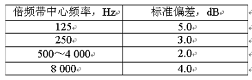 按照本標準進行測量,A計權聲功率級的標準偏差為2dB,倍頻帶聲功率級的標準偏差不大于表1規定的值。