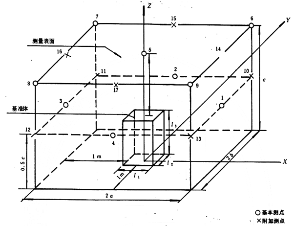 矩形六面體測量表面是位于反射平面上,各面與基準體對應面平行、且對應面間的距離為1m的矩形箱表面,見附錄B(補充件)。
