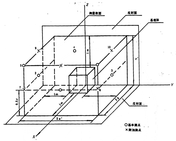 d. 反射平面上自由聲場測試還應記錄基準體尺寸、測量表面的尺寸和表面積及按附錄A確定的環境修正值K。