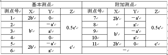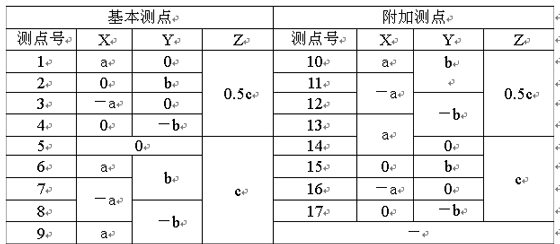 所有的測點都應在7.3條所確定的測量表面上,圖B1~圖B3給出了測量表面上測點位置,表B1~表B3分別給出了各測點的坐標。