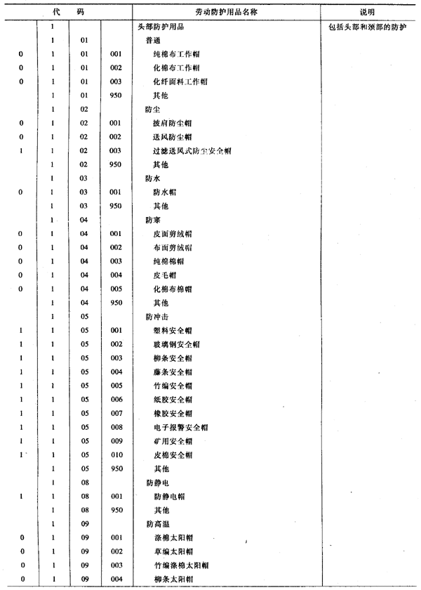 鑒于多功能系列化護品的不斷出現,一般我們采用以主要防護部位的功能作為編碼定位的基礎。如電報警安全帽、送風式防塵頭盔等,都設置在頭部防護類中,如確實難以歸類,則放在其他類中。