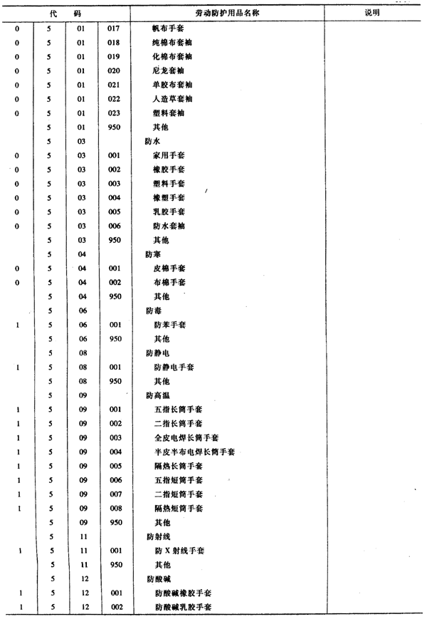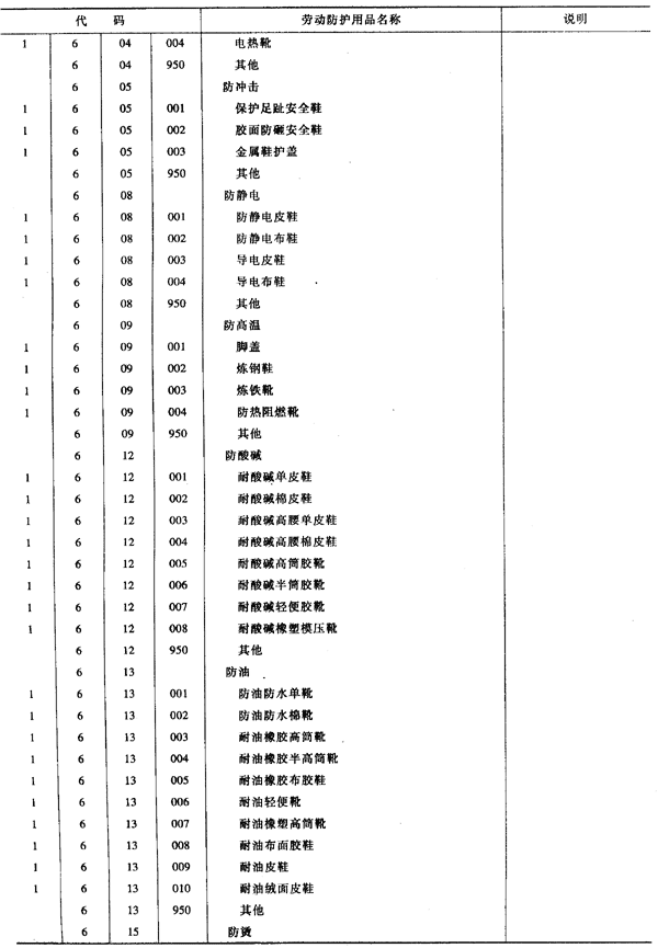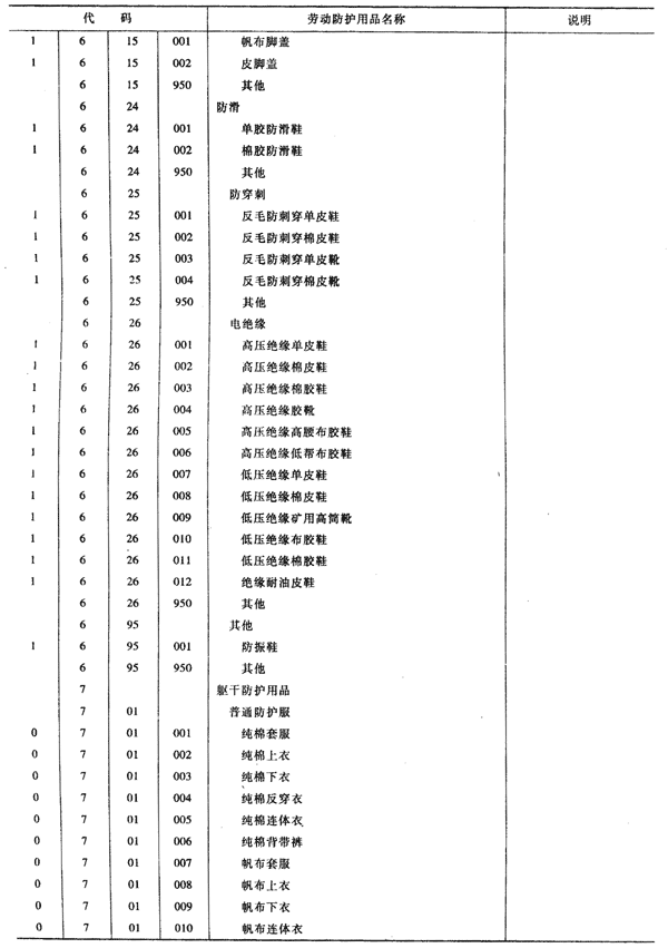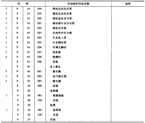 5. 本標準屬勞動部行業標準,勞動防護用品代碼表的歸口和維護由全國勞動防護用品標準化技術委員會負責。