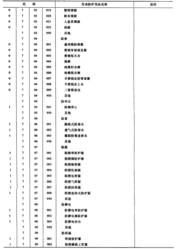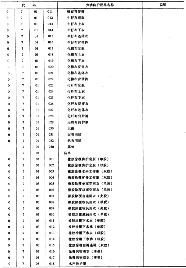 3) 與商業系統特種勞動防護用品經營管理品種范圍的分類相協調。