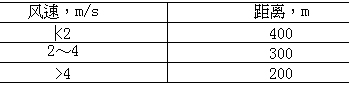 3.1內燃機廠的衛生防護距離,按其所在地區近五年平均風速規定為: