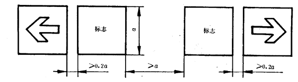 7.2.2兩個相反方向的正方形標志并列設置時,為避免混淆,在兩個標志之間至少應留有一個標志的間隙,如圖9所示。
