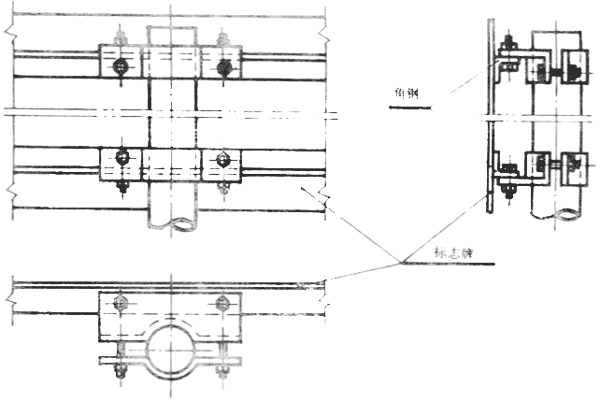 7.3.3柱式設置的消防安全標志牌應用螺栓、管箍等牢固地固定在標志桿上。 固定方法可參照圖12進行。